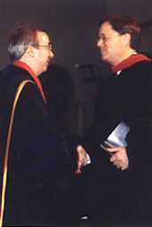 ![]() Dr. Morris Chapman, president of the Executive Committee of the Southern Baptist Convention, congratulates Dr. Dockery during the Inaugural Ceremony. |