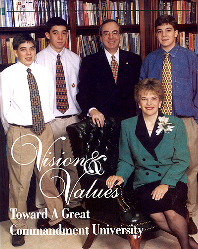 "We need a vision established on the values of the priority of worship and service in all aspects of life while seeking to develop a generation of students who can be agents of reconciliation to a factious church in a hurting and broken world resulting in reconciliation to God as well as to one another. Therefore as we begin this new administration we invite you all to run the race with us as we set forth the vision of building a great Christian liberal arts university established on the values of a commitment to the coherence of knowledge and God-revealed truth, flowing from our submission to the Lordship of Christ, and exemplifying the Great Commandment in all that we do. I believe a Great Commitment to the Great Commandment, its implications and applications, will bring about a Great University, faithful to a Great Heritage, resulting in great days for the future of Union University, which can only be accomplished by God's Grace and for His Glory."