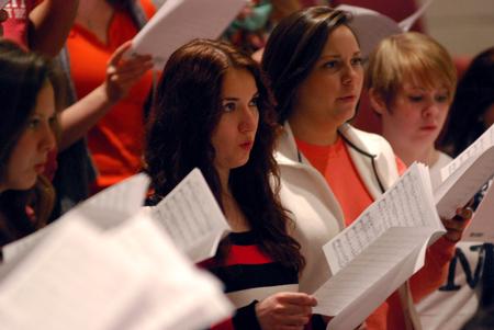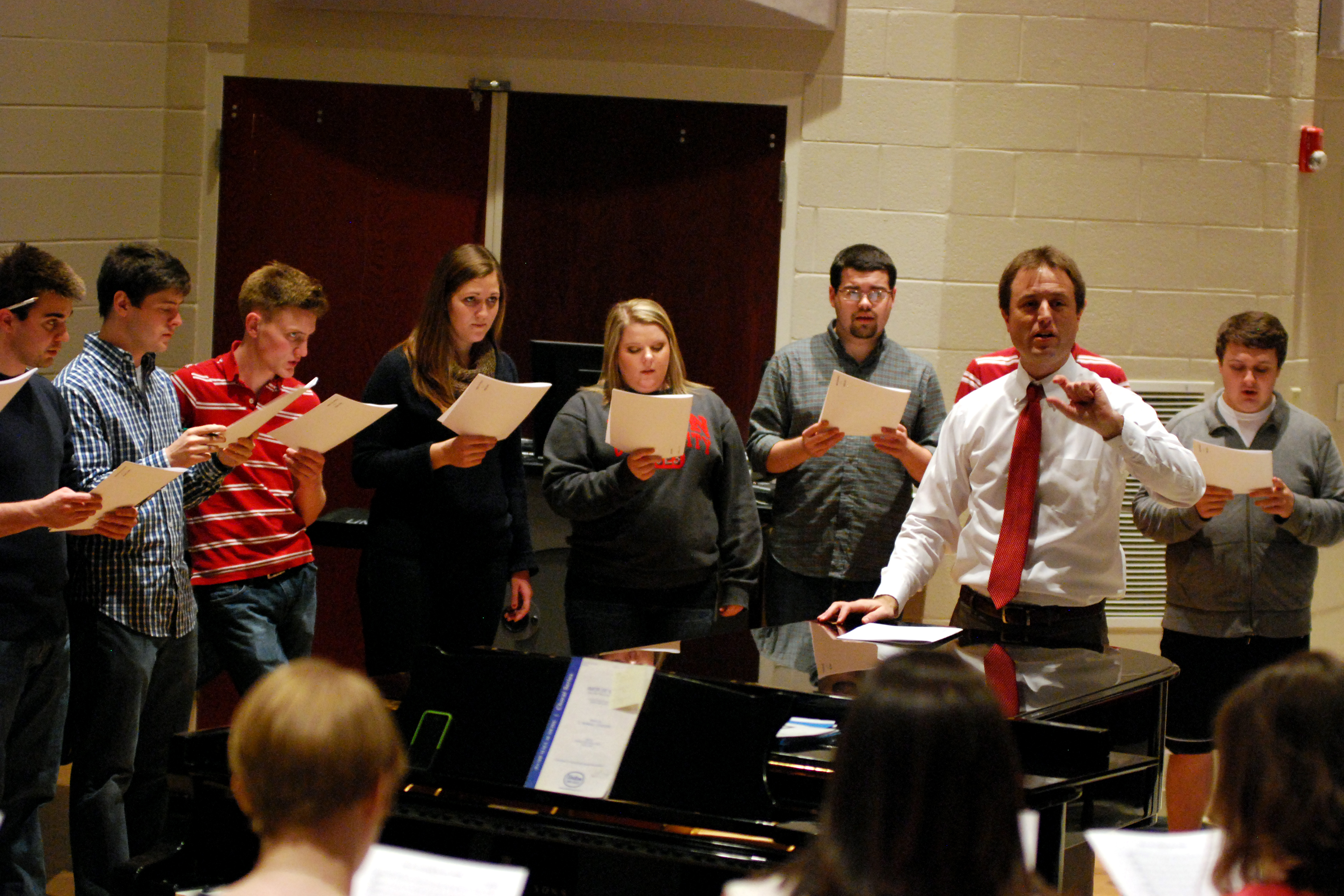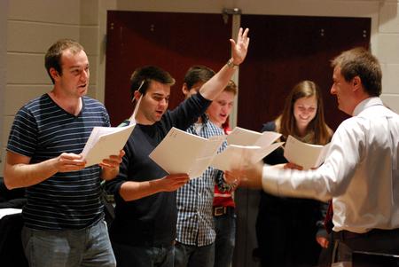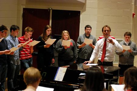 2/26/13 - 21506 The University Singers practice under the direction of Chris Mathews, associate professor of music and department chair. - Anne Richoux