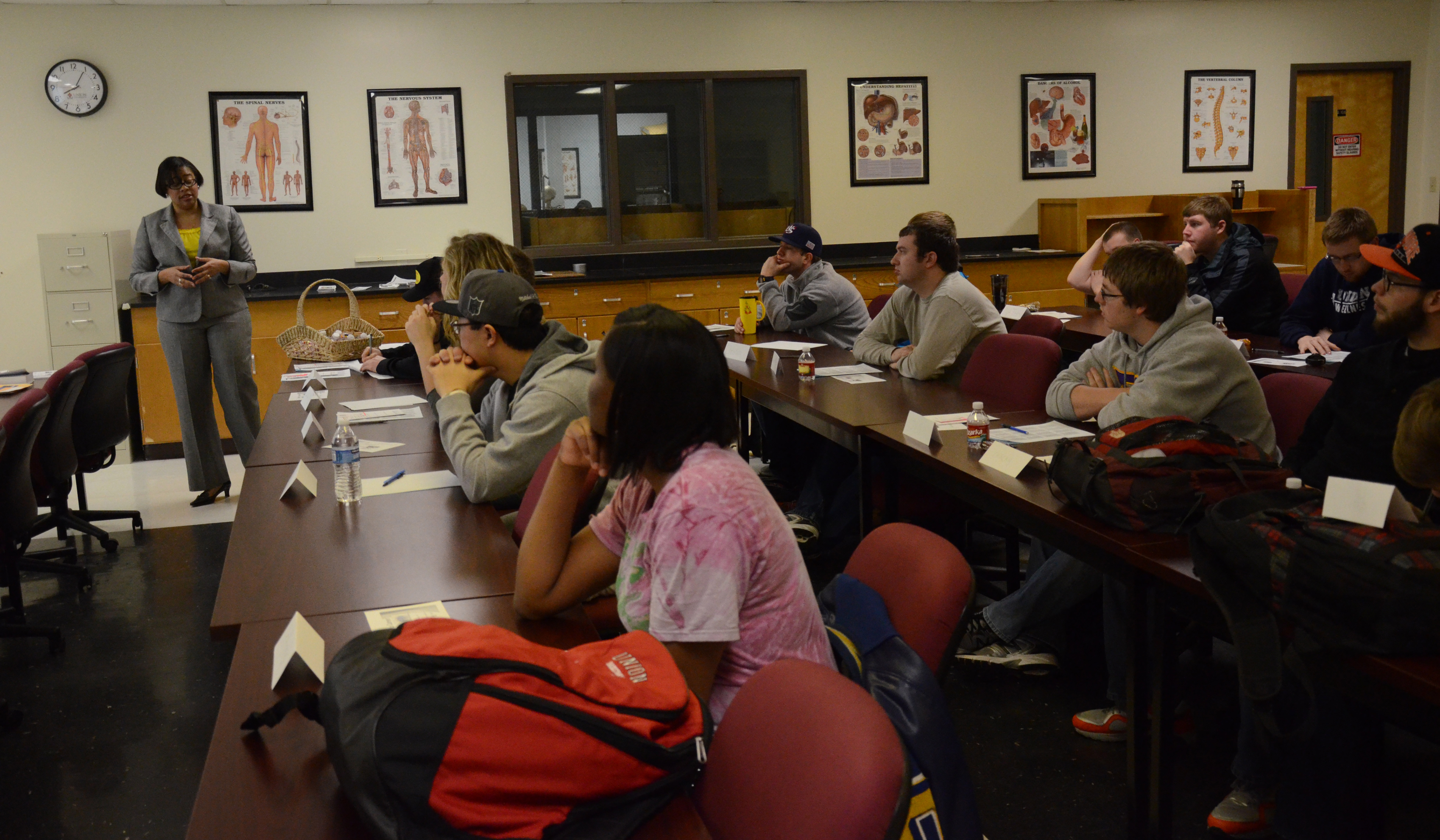 2/5/13 - 21338 Jacqueline Taylor, director of the Vocatio Center for Life Calling and Career, presents during a PEWS MBTI seminar for students. - Olivia Wallace