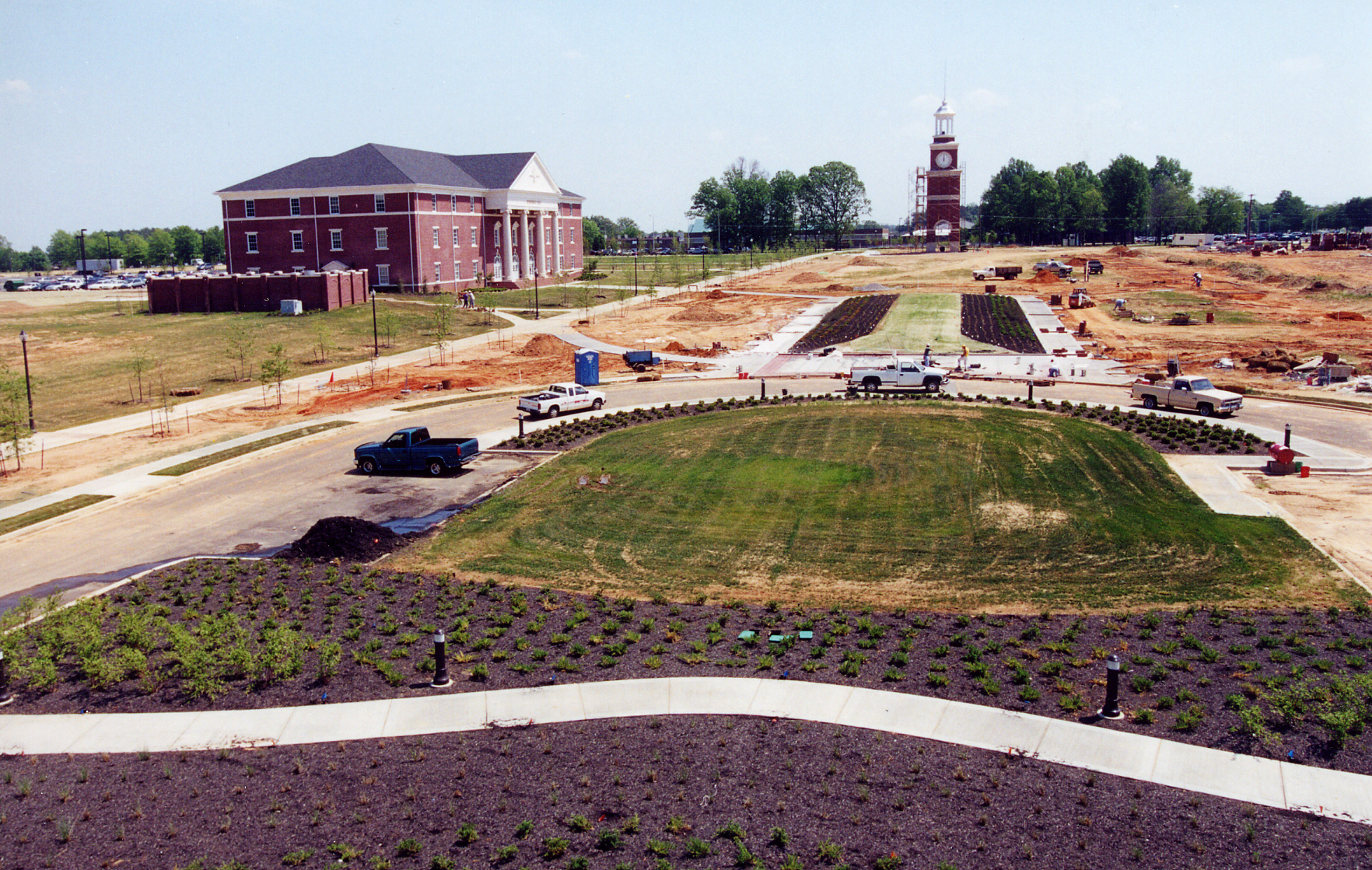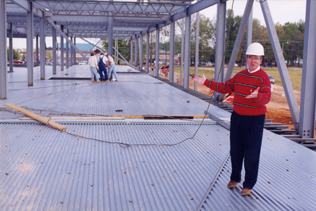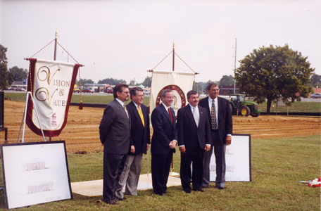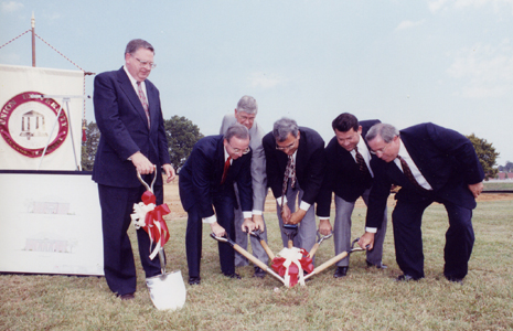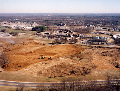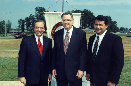 | Spring 1998 - Beginning to Develop West Campus | Fall 1998 - Initial Development of West Campus - Home of Jennings Hall, Miller Tower, etc. - larger image | Fall 1998 - Dr. Dockery with the TLM Team at the Hammons Hall Dedication. | Fall 1998 - Groundbreaking for Hammons Hall - President Dockery with John Drinnon, Union Trustee Chair (1995-1998) and Gary Taylor, Trustee Chair (1998-2001). | Fall 1998 - Groundbreaking for Hammons Hall - Trustee Chair John Drinnon, President David S. Dockery, Contractor Ken Brasfield, TLM Representatives, and Trustee Chairman-Elect Gary Taylor. | Spring 2000 - Dr. Dockery on the second floor of Jennings Hall during its construction. | Beginning Development of New Baseball, Softball, and Soccer Fields | Spring 2001 - Dr. Dockery oversees the development of campus and construction of Miller Tower. | Construction of Miller Tower and development of the West Campus. - larger image |