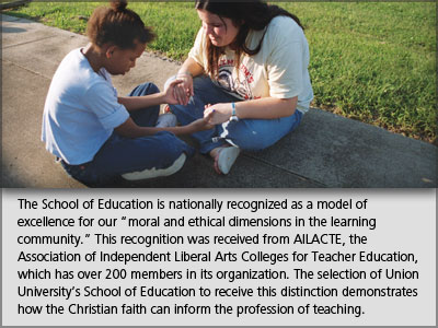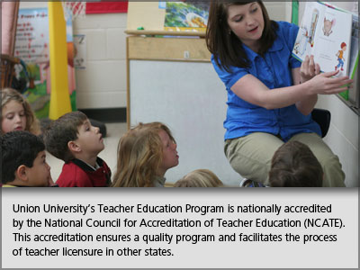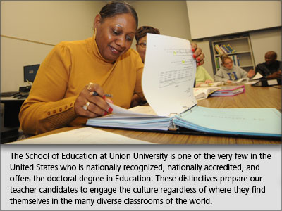 The School of Education at Union University is hosting an accreditation visit by the National Council for Accreditation of Teacher Education (NCATE) in March 2013. Interested parties are invited to submit third-party comments to the visiting team. Both NCATE and Union University recognize graduates, parents, schools, and community organizations have valuable perspectives on the quality of the programs that prepare teachers and other school personnel. We invite interested parties to submit written testimony on the School of Education to: