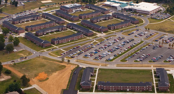 Each apartment in The Quads contains a kitchen, two bathrooms, and four bedrooms, giving each student a private bedroom.
