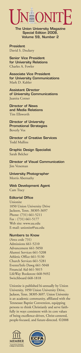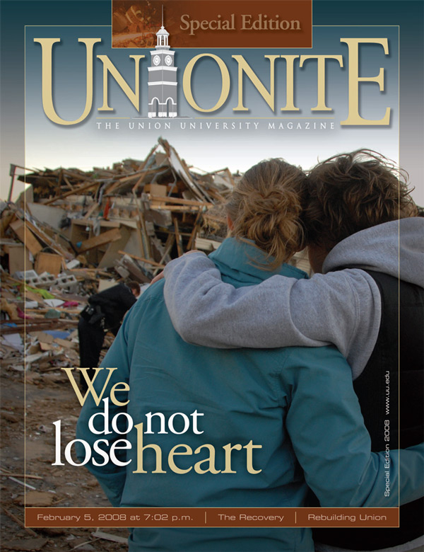 About the cover: Junior Heather Martin and Julie Boyer (’01) view the wreckage from which they escaped after an EF-4 tornado slammed the Hurt andWatters complexes Feb. 5. Both women recorded their thoughts about the experience. Read excerpts of these and other inspiring stories of survival in this special edition. |