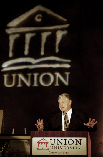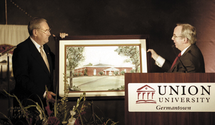 ![]() Union University received a $1 million gift from Memphis businessman and Union trustee Roy L. White at an evening banquet featuring former Secretary of Education William Bennett, Thursday, Sept. 7. The banquet was a fund-raising event for the university’s campus in Germantown. This fall the Germantown campus, which currently serves more than 250 students in fields covering business, nursing and education, began classes in permanent facilities purchased this summer from Immanuel Baptist Church, located at the corner of Hacks Cross Road and Poplar Pike, near Germantown High School. The Sept. 7 banquet raised more than $1.1 million for the new campus. |