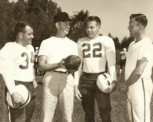 The level of seriousness that has come to characterize the major college football of today just was not there in the 1930s, 1940s and 1950s. Union’s football players showed up and played hard, but if they lost it was not the end of the world. “Back then, you didn’t have all the assistant coaches, and you didn’t have films of the game to study, the opponents’ films and things like that that they have today,” Matlock said. “It was more fun back then because there wasn’t as much pressure put on the players to win.” Pressure was World War II. When players like Matlock and Gregory made it back alive, they were thrilled to be able to play a game like football. “We just went out and had a big time,” Gregory said. “It wasn’t a life-or-death thing. Most of the boys who played when I did were all veterans. We’d been in the Navy, the Army and the Marines for three or four years before we went to Union. I went right out of high school into the Navy. I was in the Pacific for two years, so coming back playing football was a breeze.” Football has become much more sophisticated in the 21st century, particularly in the passing game. Union’s offense in the late 1940s consisted mainly of the single wing and double wing formations, which emphasized trickery in the backfield. Ends like Matlock and Gregory were mostly there to block. “We had maybe four or five pass plays,” Gregory said. “If we threw 10 times a game it was unusual. Now they throw every other down, so it’s a different game. The plays are so much more complicated now because they’ve got specialists playing at every position.” Thompson remembered back to the day when the university installed lights on the field. It took the Union backs some time to adjust. “We thought it was really a disadvantage to try to receive punts in the lights that we had, because the ball would go up out of sight and then appear to be falling.” Thompson has 64 reasons to look back fondly on his days at Union. Those are the years that he has been married to Verna, whom he met on campus. Retired now in Ripley, Tenn., he remembered how much of an impact his days in the Union football program have had on his life. “Staying with it and knowing that things didn’t come easy, that you had to work hard and you had to train for it, you had to put your mind to it,” he said. “We did this, and I think that has followed throughout life. If you are assigned a job, stick with it and work at it until you get the job done to your satisfaction.” Matlock, who is retired in Jackson, said that football made his life a lot easier. “I learned to get along with people, learned to take the low spots as well as the high spots in life.” Gregory, who owns a sign painting business in Jackson, looks back on “the appreciation of playing with the people we played with, the friendships we’ve kept up through the years, and just the camaraderie, I guess.” Camaraderie would be the right word to choose. Union’s football players used to have to maintain a pretty high degree of closeness when it came to one particular piece of equipment. “We had probably 45 or 50 players on the team and we only had about 25 or 30 helmets,” Gregory said. “They didn’t spend a lot of money on equipment. Now, by the time these kids put their gloves on and their elbow pads on and their shin guards and everything else, they can’t play ball. They’ve got too much stuff on. They can’t even move.” The recent reunion of former Union football players at the university was deeply appreciated by a distinguished group of gentlemen who are now more than 50 years removed from their playing days. “I thought it was great,” Jelks said. “It was so good to see so many of those boys I had the privilege of coaching that I hadn’t seen since those days.” “Very nice,” Thompson said. “We appreciated being recognized as old football players. That was something that we never in our lifetime expected to be called back at this late age and recognized.” The special nature of the reunion hit home with Gregory. “I thought it was nice,” he said. “That was real good. We have had several football reunions, but this was the last one, I guess, so it was probably the best.” Palmeri is the former editor of Share the Victory, the national sports magazine for Fellowship of Christian Athletes. You may write to him at unionite@uu.edu. |