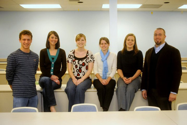 Students inducted into the Delta-Psi Chapter on February 19 are (left to right) Joel Wellum, Katie Mohler, Katelyn O’Roark, Kate Cline, Elizabeth Blevins, and William Fortner.