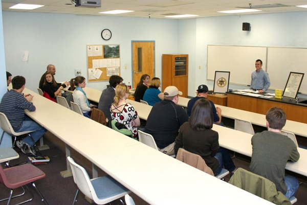 Chapter President Joshua Abbotoy talks about the 2010 Phi Alpha Theta Biennial Convention in San Diego, California, during the Delta-Psi plenary meeting on February 19.