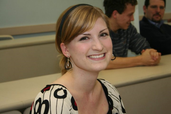 Katelyn O’Roark shows delight after her election as the Delta-Psi vice president for 2009-2010.