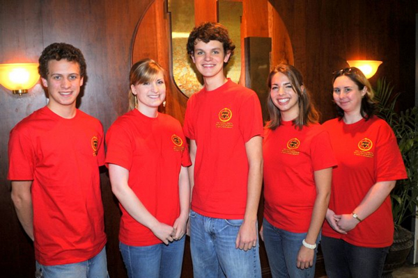 The 2009-2010 Delta-Psi officers join together during the Phi Alpha Theta spirit day. They are (left to right): Joel Wellum, senator; Katelyn O’Roark, vice-president; Noah Arnold, president; Mary Alisa Techentin, secretary; and Lauren Bogdan, senator.