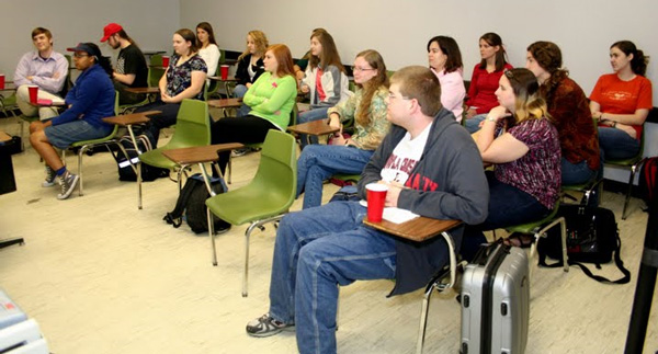 Rutledge Honorary History Club members and initiates listen to Dr. Terry Lindley (not pictured) speak about upcoming club events during their October 26 meeting.