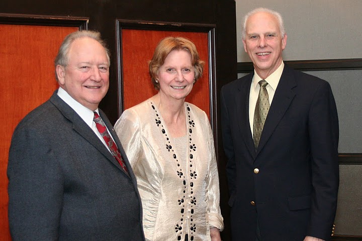 Dr. Stephen Carls (right) stands with Phi Alpha Theta Executive Director Jack Tunstall and the newly installed president Dr. Sandra Horvath-Peterson at the end of the Presidential Banquet on January 8.
