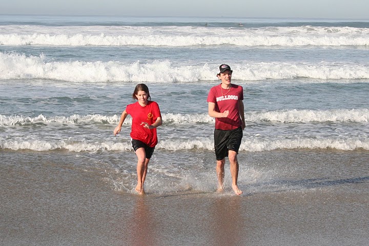 Kate Cline and Noah Arnold enjoy the waters of the Pacific Ocean at Mission Bay on January 9.
