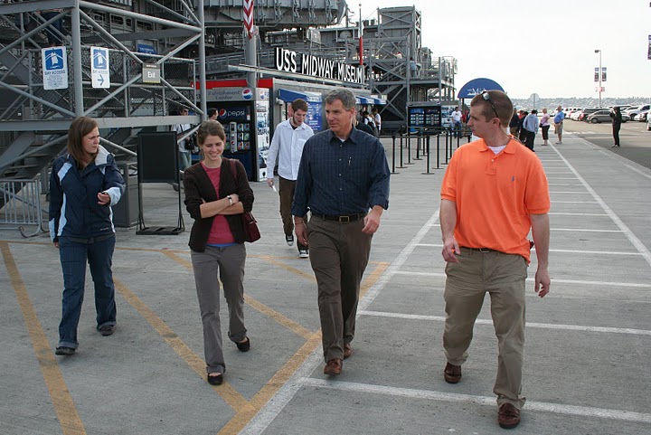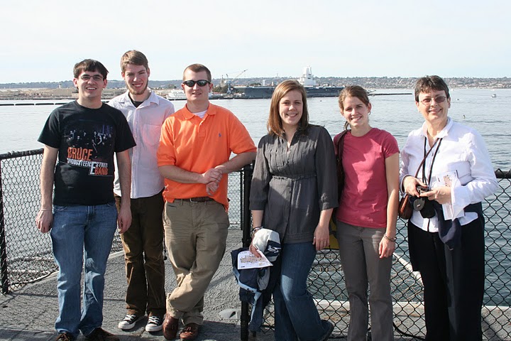 Members of the Union group leave the USS Midway Museum on January 9 to go to The Fish Market Restaurant nearby. They are (front, left to right): Elizabeth Blevins, Kate Cline, Dr. David Thomas, and Cameron White. Behind Dr. Thomas is Charles Googe.