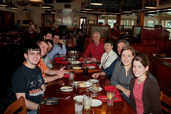 Members of the Union delegation at the Phi Alpha Theta convention wait for their lunches at The Fish Market Restaurant (next to the USS Midway Museum) in San Diego on January 9. They are (clockwise): Micah Snow, Cameron White, Noah Arnold, Charles Googe, Dr. Keith Bates, Dr. Stephen Carls, Dr. Alice-Catherine Carls, Dr. David Thomas, Elizabeth Blevins, and Kate Cline.