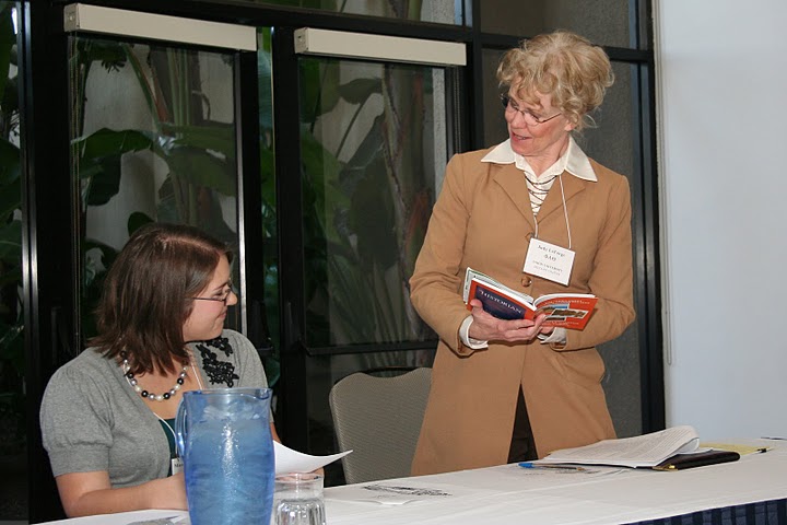 Dr. Judy LeForge (right), a chair/commentator for a panel called “Changes in the Images of Women,” introduces Morgan Hoodenpyle ([left] Arizona State University) and her paper about “Moving the Chorus One Step Backward: ‘Glorification,’ Glamour, and Boundaries in the Follies and Ziegfield’s 1926 Declaration” on January 7.