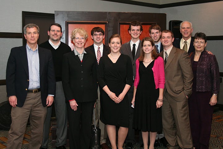 Members of the Union University group at the Phi Alpha Theta 2010 Biennial Convention in San Diego join together at the end of the Presidential Banquet on January 8. They are (left to right): Dr. David Thomas, Dr. Keith Bates, Dr. Judy LeForge, Micah Snow, Elizabeth Blevins, Noah Arnold, Kate Cline, Charles Googe, Cameron White, Dr. Stephen Carls, and Dr. Alice-Catherine Carls.
