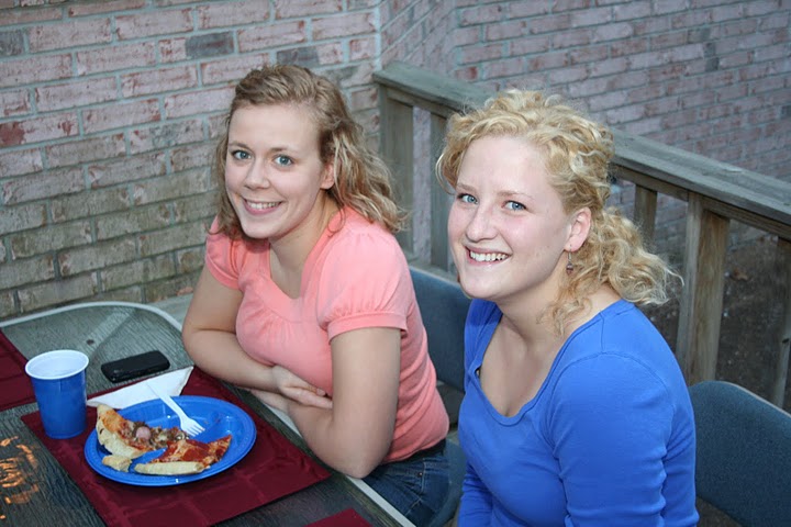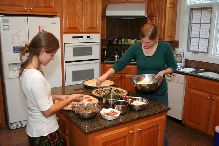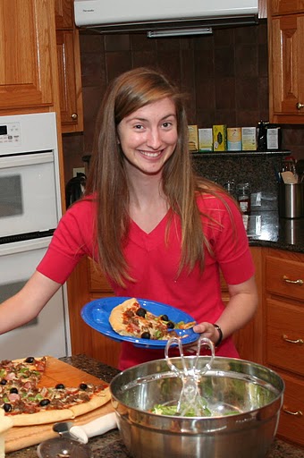 Delta-Psi President Kate Cline (left) and Vice President Katelyn O’Roark prepare pizzas for the Best Chapter Award pizza party on October 22, 2010.