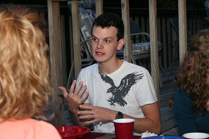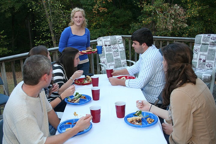 Delta-Psi members and their friends enjoy food and conversation on the deck of Dr. Carls’s home on October 22. They are: (starting on the left and going clockwise) Michael Patterson, Savannah German, Caitlin Roach, Elaura Highfield (standing), Jordan Haskins, and Megan Winters.