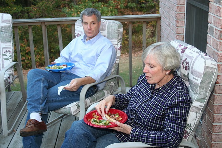 Dr. David Thomas and his wife Nancy delight in good food and savor the beautiful weather that graced the October 22nd Best Chapter Award pizza party at the home of Dr. Carls.