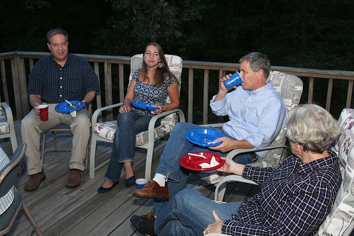 Dr. Henry Allen (left to right), Mary Alisa Techentin, Dr. David Thomas, and Mrs. Nancy Thomas relax on the deck of Dr. Carls’s home on October 22.