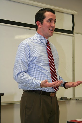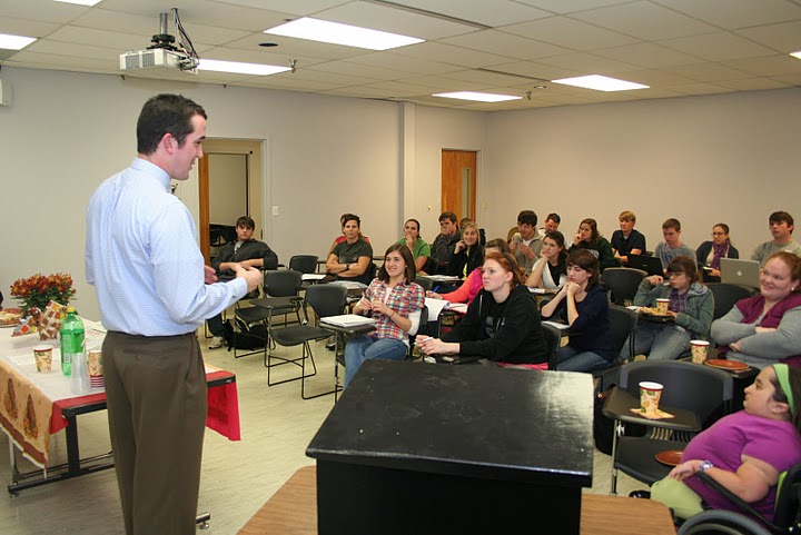Mr. Jared Myracle talks on November 8 about the development of his interest as a student at Union University in teaching as a career.