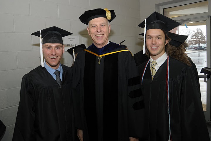 Daniel Ramer (left to right), Dr. Stephen Carls, and Jordan Thompson stand together prior to Union’s fall commencement on December 11, 2010.