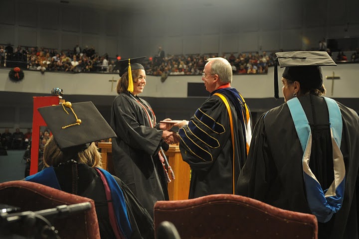 History major Camille McCullar receives her Bachelor of Arts degree from Union President Dr. David Dockery at the school’s fall graduation on December 11, 2010.