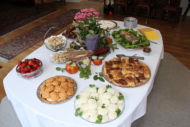 A table filled with food awaits the arrival of guests at the history department's welcome reception on September 12, 2011, at Dr. Carls's home.