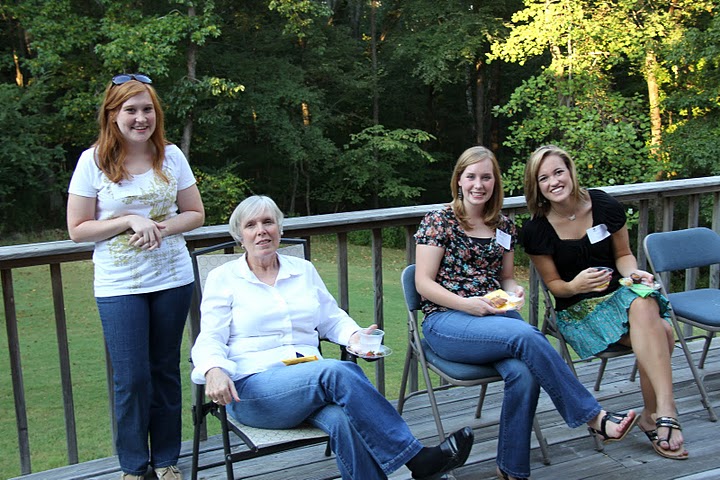 Attendees at the history department's welcome reception on September 12, 2011, enjoy the nice evening weather on the deck of Dr. Carls's home. They are (left to right) Caraline Rickard, Mrs. Nancy Thomas, Heather Stricklin, and Allie Durham.