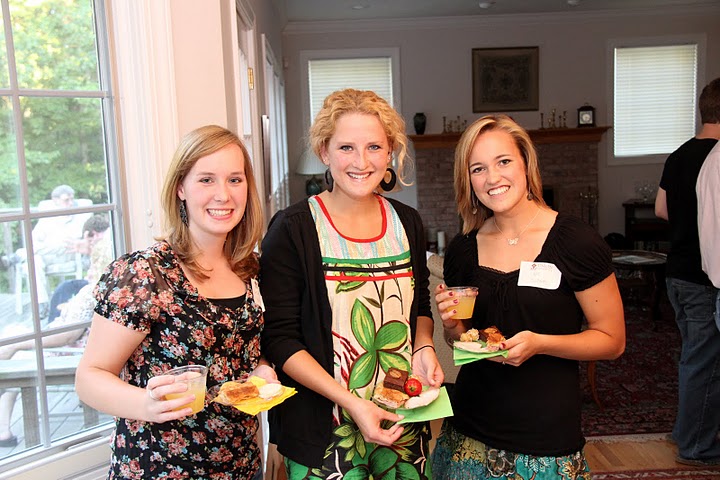Elaura Highfield (left to right), Savannah German, and Caitlin Roach prepare their food plates at the history welcome reception on September 12, 2011.