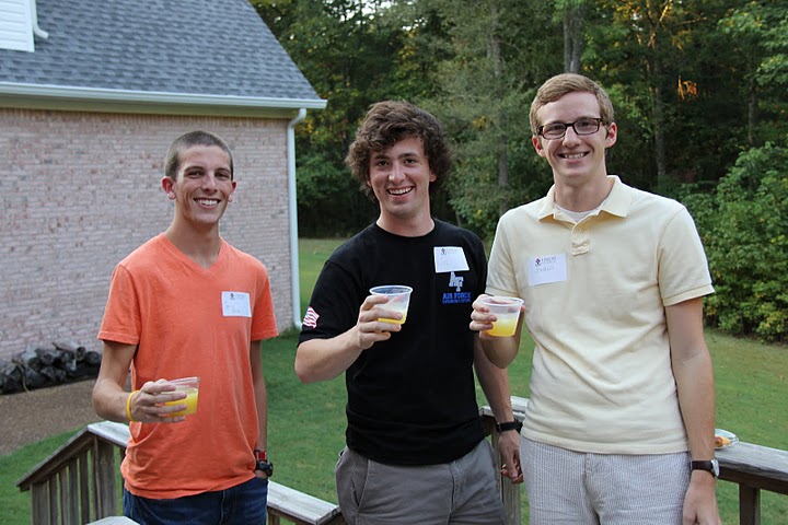 Logan Smith (left to right), Wil Sloan, and Jordan Hayes relax at the history welcome reception on September 12, 2011.
