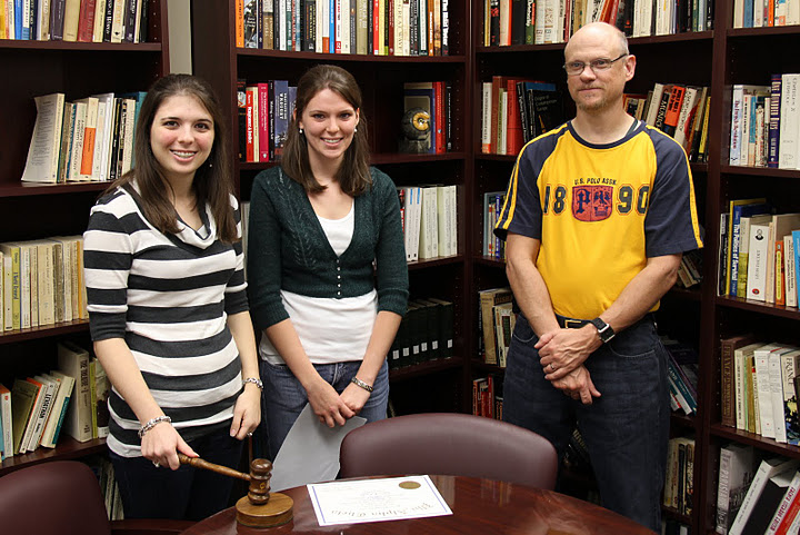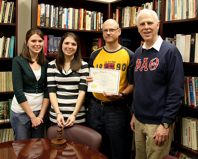 Nov 15, 2011 - The Delta-Psi Chapter of Phi Alpha Theta History Honor Society held a special induction ceremony on November 15, 2011. Delta-Psi Chapter President Caitlin Roach and Vice President Savannah German participated with Faculty Advisor Dr. Stephen Carls in the initiation of history major James Fowler. Vice President Savannah conducted the ceremony and President Caitlin gave James his certificate of membership. Dr. Carls coordinated the event and took photos.