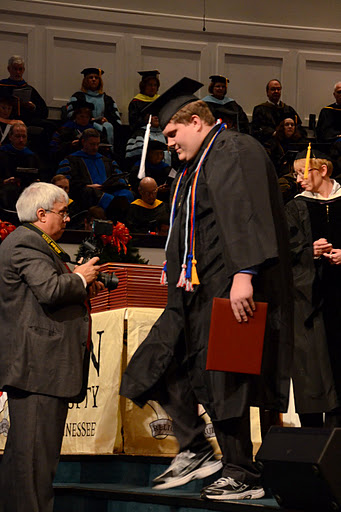 History major and Phi Alpha Theta member Samuel Wiggin descends from the stage after receiving his bachelor's degree at Union's fall graduation on December 10, 2011. Photo by Ebbie Davis.