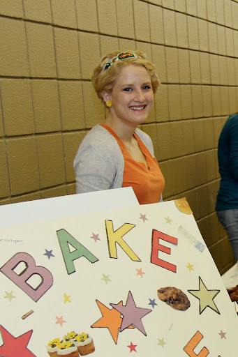 Delta-Psi member Elaura Highfield, working as a sales volunteer, takes time near Barefoots Joe to smile for at the camera during the Franco-American bake sale on March 7, 2012.