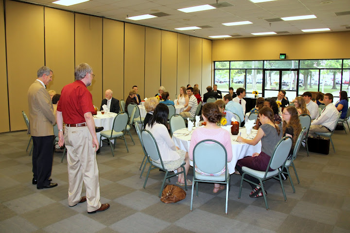 Dr. Terry Lindley introduces Dr. David Thomas, who is about to give the invocation at the Department of History Awards Banquet on May 3, 2012.
