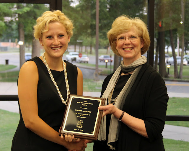 Elaura Highfield accepts a History Major Award from Dr. Judy LeForge at the history department awards banquet on May 3, 2012.