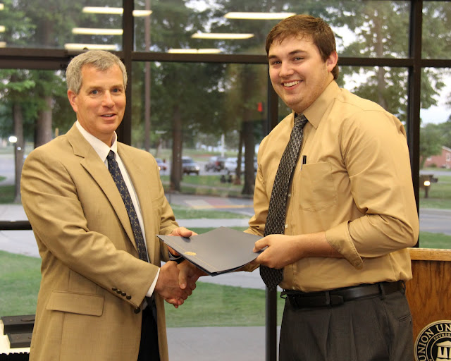 The history department held its annual awards banquet on May 3, 2012, to celebrate the accomplishments of several history students and an outstanding history alumnus. Sponsored by the Rutledge Honorary History Club, the banquet featured Dr. Micah Watson, a political science professor at Union, as its main speaker. Dr. Watson talked about the exploits of his great-great-grandfather, Emmet C. West, who served as a Union soldier in the American Civil War. Professor Watson based his presentation on West’s wartime recollections that were made into a book in 1905 with the title History and Reminiscences of the Second Wisconsin Cavalry Regiment. Forty people attended the banquet, including all of Union’s history faculty members and several of the students’ parents.