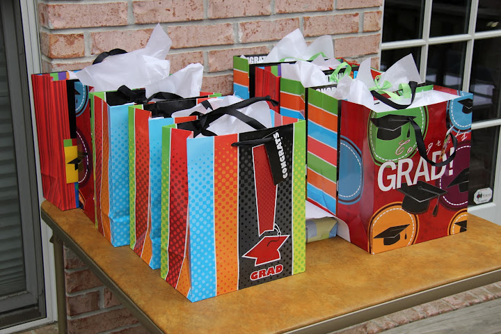 Gift bags for graduating Phi Alpha Theta members and other recognition gifts sit on a table prior to the beginning of the 20th Annual Phi Alpha Theta/History Department Cookout on May 11, 2012.