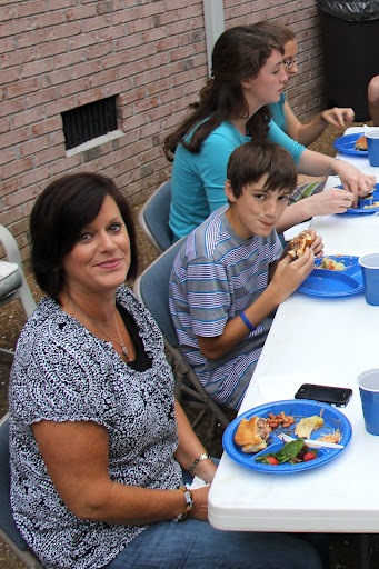 Attendees at the Phi Alpha Theta/History Department Cookout on May 11, 2012, enjoy food and fellowship. They are (from front to back) Mrs. Kendra BeDen, Kameron BeDen, Megan Winters, and Hannah Marsh.
