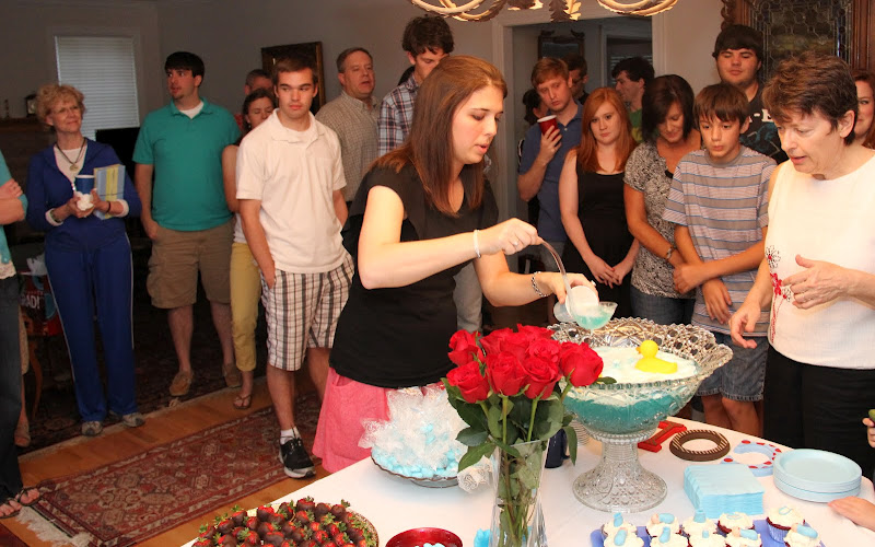Delta-Psi Chapter President pours the first glass of punch at the baby shower segment of the Phi Alpha Theta/History Department Cookout on May 11, 2012. The shower was to celebrate the upcoming birth of a son to Dr. and Mrs. Keith Bates.