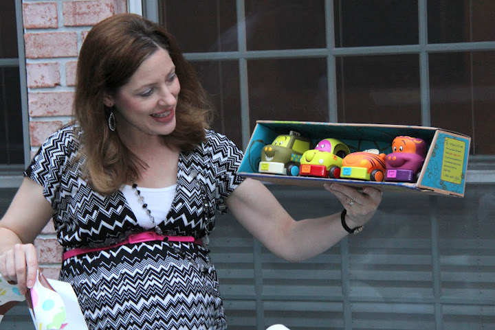 Mrs. Lisa Bates expresses delight after opening a gift of toys during the surprise baby shower that was a part of the history cookout on May 11, 2012.