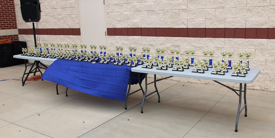 Trophies and medals fill three tables prior to the "Racing So They Can Ride" races in Jackson on September 15, 2012.