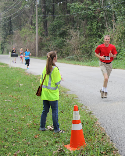 Union’s Delta-Psi Chapter of Phi Alpha Theta History Honor Society had two volunteers and a runner participate on September 15, 2012, in the annual “Racing So They Can Ride” 5K and 10K Fund”Racing” Event that supports hippotherapy for children with special needs in West Tennessee. The event was sponsored by the Rein-Bow Riding Academy, an arm of West Tennessee Healthcare, and some 100 people competed in the races. Chapter President Jeffrey Lewoczko was a runner in the 5K race, while Vice President Mary Ellen Poe and Faculty Advisor Dr. Stephen Carls worked as volunteers guiding people in the right direction along the racecourse. Douglas Martin, a 2007 history graduate of Union and a member of the Delta-Psi Chapter of Phi Alpha Theta, won overall 1st place in the 5K for male runners. Jeffrey won 3rd place in his age category.