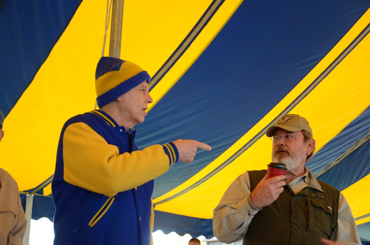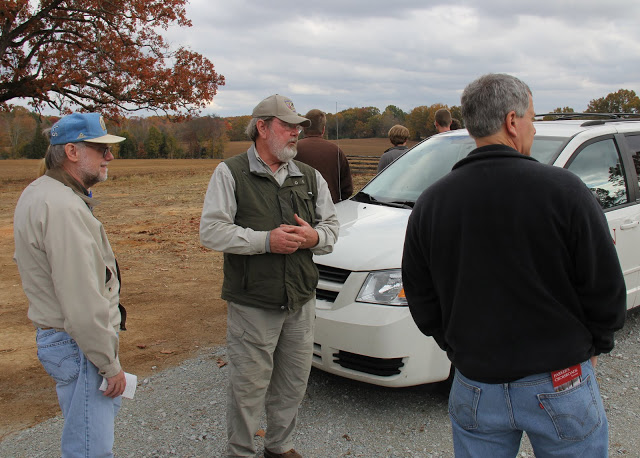 State Representative Steve McDaniel (center) talks to Dr. Terry Lindley (left) and Dr. David Thomas about the beginning phase of the Battle of Parker's Crossroads during a tour of the battlefield on the afternoon of November 6, 2012.