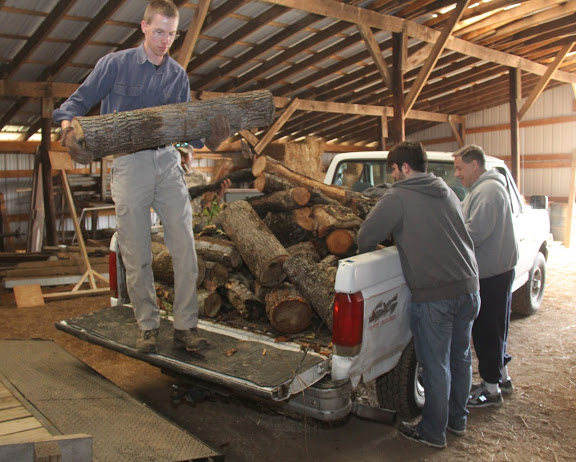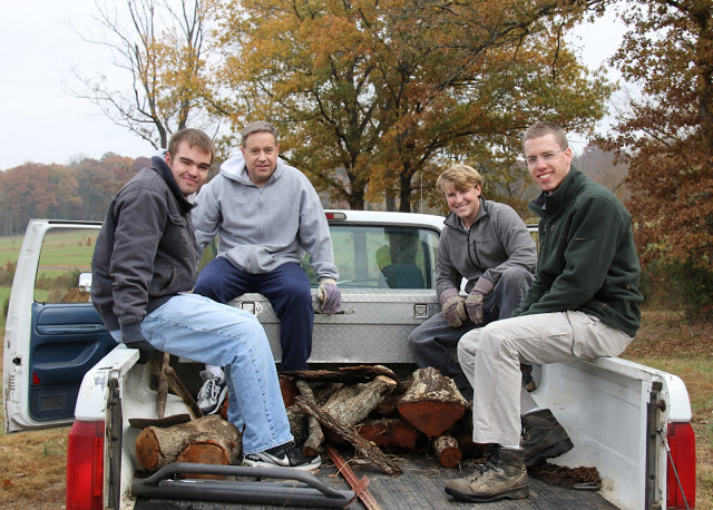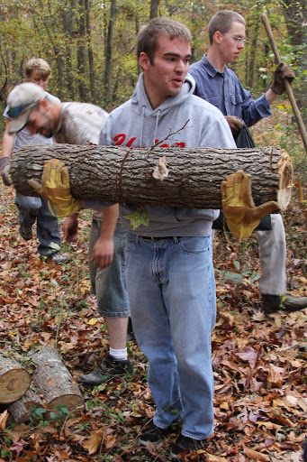 History major Colton Gebben carries a large piece of firewood to load onto a pickup truck at Parker's Crossroads on November 6, 2012.