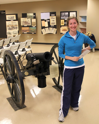 Rutledge Honorary History Club President Mary Ellen Poe stands by a cannon in the Interpretive Center at Parker's Crossroads Civil War Battlefield Park on November 6, 2012.