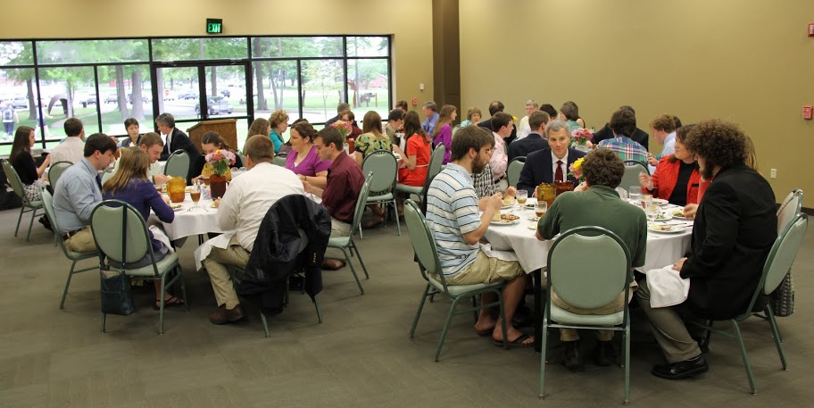 Attendees at the history department awards banquet on May 2, 2013, enjoy food and conversation together in Union University's Coburn Dining Room.