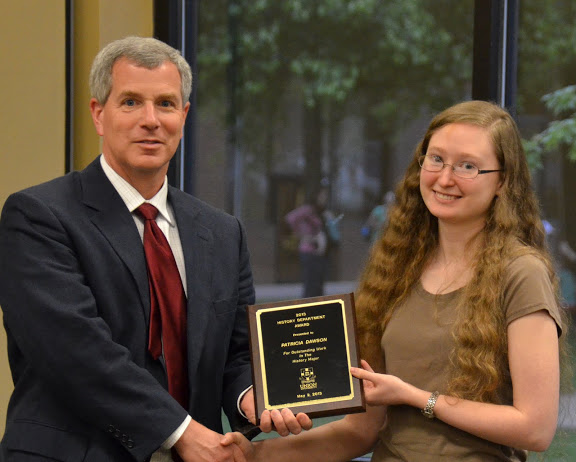 Dr. David Thomas presents an award for outstanding work in the history major to Patricia Dawson on May 2, 2013. Photo by Morris Abernathy
