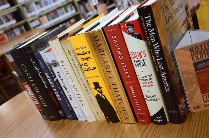 The 13 books that the prize money purchased include: Appomattox: Victory, Defeat, and Freedom at the End of the Civil War by Elizabeth R. Varon; Blood Sisters by Sarah Gristwood; Castlereagh by John Bew; The Collaboration: Hollywood’s Pact with Hitler by Ben Urwand; Henry Ford by Vincent Curico; Knights of the Golden Circle: Secret Empire, Southern Secession, Civil War by David C. Keehn; Landscapes of the Metropolis of Death by Otto Dov Kulka; Lincoln’s Tragic Pragmatism by John Burt; Margaret Thatcher: From Grantham to the Falklands by Charles Moore; The Men Who Lost America by Andrew Jackson O’Shaughnassy; The People’s Car by Bernhard Rieger; Saving Italy by Robert M. Edsel; Stalin’s Curse: Battling for Communism in War and Cold War by Robert Gellately.